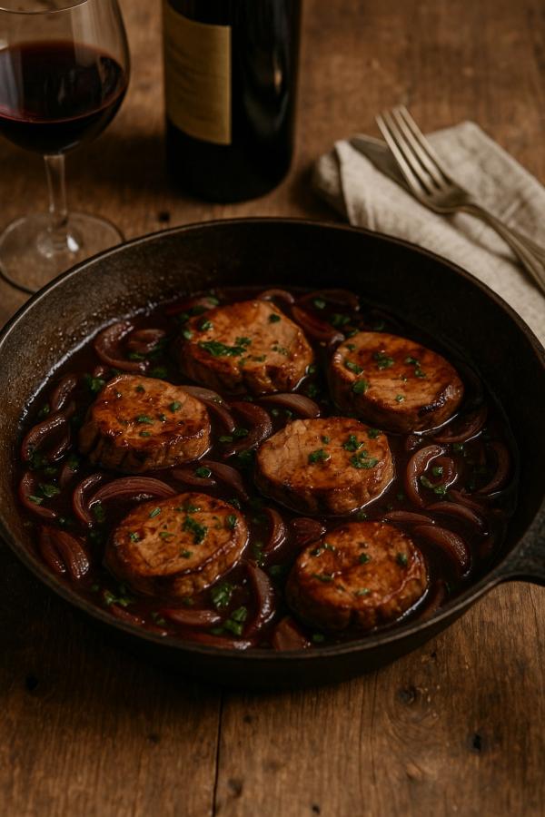 Schweinefilet in Rotweinsoße